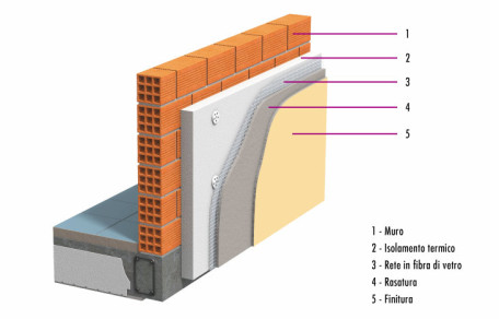 a) Isolamento termico a cappotto con eliminazione dei ponti termici;